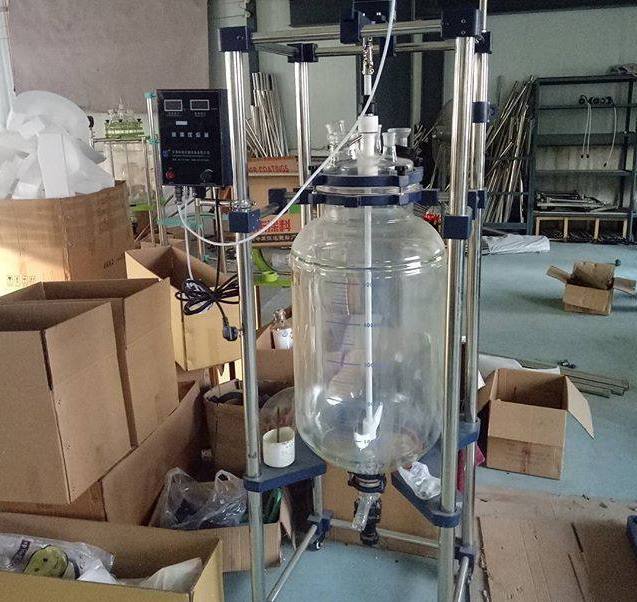 玻璃反應釜為雙層玻璃設計,內層放入反應溶媒可做攪拌反應,夾層可通上不同的冷熱源做循環加熱或冷卻反應。在設定恒溫條件下,在密閉的玻璃反應器內,可根據使用要求在常壓或負壓條件下進行攪拌反應,并能做反應溶液的回流與蒸餾,是現代精細化工廠、生物制藥和新材料合成的理想中試、生產設備。